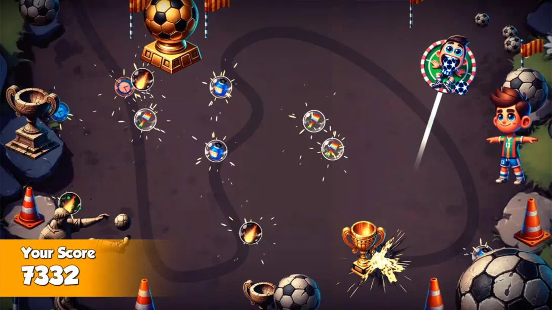 视听体验:Q版弹珠角色搭配动感音乐,射门特效(如彩虹轨迹)增强视觉反馈。