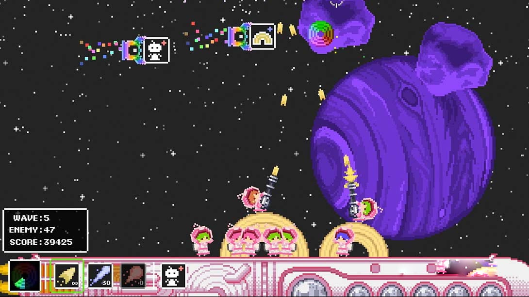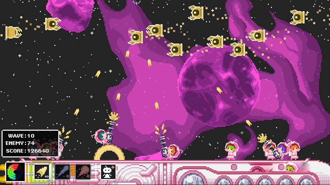 日本人只喜欢他们著名的德国风味年轮蛋糕,来自宇宙各地的饥饿入侵者也发现了这些美味佳肴!你准备好迎接保护珍贵甜点免受外星人攻击的挑战了吗?饥肠辘辘的入侵者一个接一个地靠近,想要你的飞船携带的最重要的年轮蛋糕。